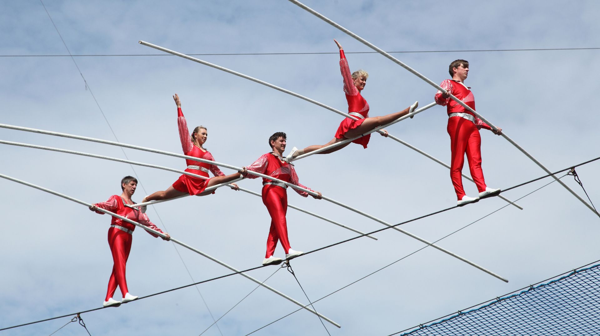 Über den Act: GESCHWISTER WEISHEIT sind ein reines Familienunternehmen, welches bereits in der 6. Generation in Deutschland und der Welt unterwegs ist. Sie begeistern jedes Publikum mit ihrer schwindelerregenden Hochseilakrobatik und unglaublichen Performances in luftiger Höhe. So kann es schonmal vorkommen, dass mehrere Motorräder über die Köpfe der Zuschauer hinweg fahren oder vom 62 Meter hohen Hochmast ein Trompetensolo erklingt. Tourneen führten sie unter anderem durch Deutschland, Thailand, Italien, Spanien und Rumänien und seit 2022 in den Niederlanden und der Schweiz.