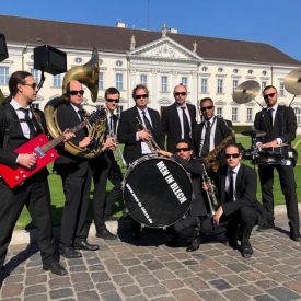 Über die Band: Mobil, witzig, ohne Strom! MEN IN BLECH ist die einzige Band der Welt, deren Musiker nicht nur spielen, sondern gleichzeitig auch tanzen. Mobilität ist das Motto! Die Bühne ist dort, wo die Band gerade spielt. Sie benötigen keinerlei technische Hilfsmittel, keinen Strom, keine Mikrofone. MEN IN BLECH ist die erfolgreichste mobile Band in Deutschland, die das Publikum auch in Europa und weltweit begeistert. „Trompete spielen können viele - dabei tanzen nur wir!“