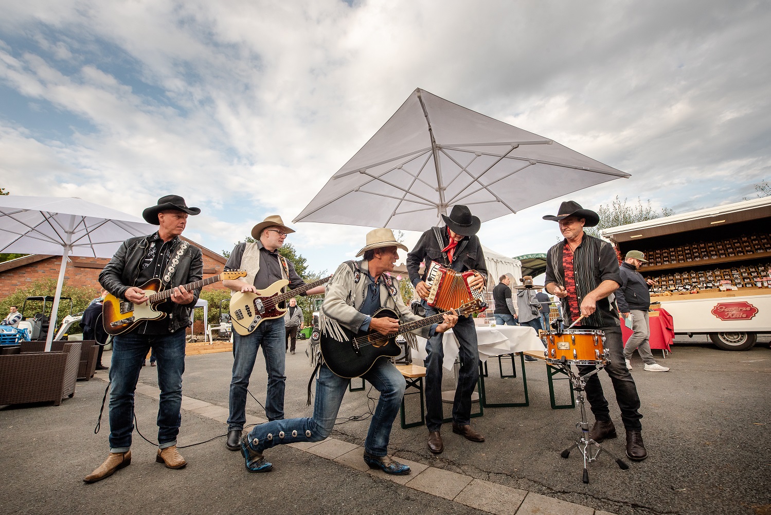Repertoire: Erleben Sie die Musik-Cowboys mit ihren besonderen Interpretationen der großen Hits. Vergessen Sie für ein paar Stunden den Alltag und träumen Sie sich zurück zu Johnny Cash, den Bellamy Brothers, Elvis, CCR, Status Quo, Udo Jürgens u.v.m.