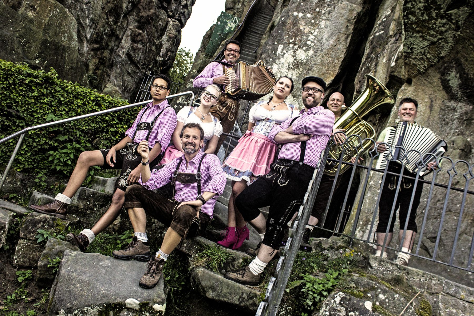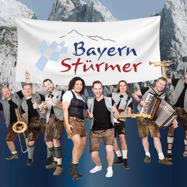 Über die Band: Wenn die Musiker der Kultcombo BAYERNSTÜRMER so richtig loslegen, erstürmen sie im Nu die Herzen des begeisterten Publikums und lassen jede Veranstaltung zu einem Highlight werden. Diese Vollblutmusiker verbreiten gnadenlos gute Laune und haben sich bereits im In- und Ausland einen Namen für erstklassige Musik und professionelles Entertainment gemacht. Die Band ist besonders durch ihre Publikumsnähe und die verrückten Showeinlagen (z.B. die Alphorn Rockshow) bekannt geworden - denn diese Musiker spielen LIVE und nicht selten auch auf Tischen und Bänken...! Oktoberfeststimmung hautnah - ein echtes Erlebnis für die Gäste. Seit 2020 spielen die BAYERNSTÜRMER auch als Walking Act unter dem Motto „Back in Tracht“, nur mit dem Instrument in der Hand auf der Bühne oder im Zelt. Dies bietet Platz für spontane Kreativität.