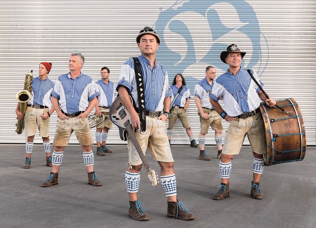 Über die Band: Über 25 Jahre BLECHBLOS‘N, das heißt über 25 Jahre Bühnen- und Partyerfahrung. 7 Mann mit zig Instrumenten, die für jeden Spaß zu haben sind und keine Gelegenheit auslassen, nochmal einen Höhepunkt drauf zu setzen. Spätestens wenn ihre Saiten- und Rhythmus-Sektion in Aktion treten, ergänzt mit fetzig-knalligen Bläsern, darüber der kraftvolle, mehrstimmige Gesang, dann merkt jeder, dass sie nicht einfach nur eine „Blaskapelle“ sind, sondern die frechste, urigste und vielseitigste Band, welche das schöne Bayernland in den letzten 25 Jahren hervorgebracht hat. Abgerundet durch die humorvolle Moderation, gespickt mit wahnwitzigen Showelementen verbreiten die BLECHBLOS‘N absolute Hochstimmung und ausgelassene Lebensfreude.